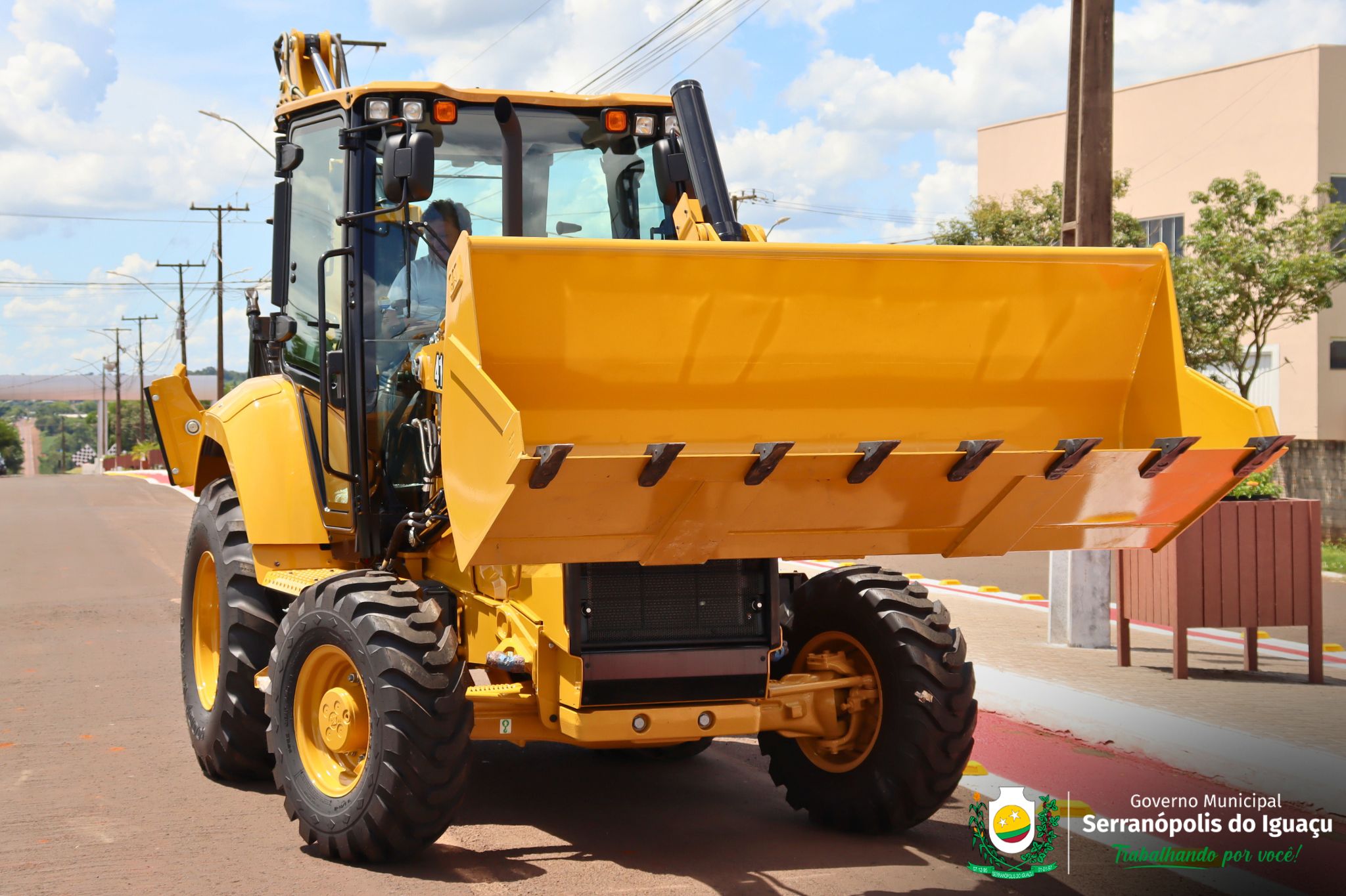 O Governo Municipal de Serranópolis do Iguaçu recebeu uma nova retroescavadeira hidráulica Caterpillar 416, zero horas, modelo e ano 2025, que passa a integrar a frota municipal e fortalecer os trabalhos desenvolvidos pela administração pública, com foco especial nas demandas da área rural.
