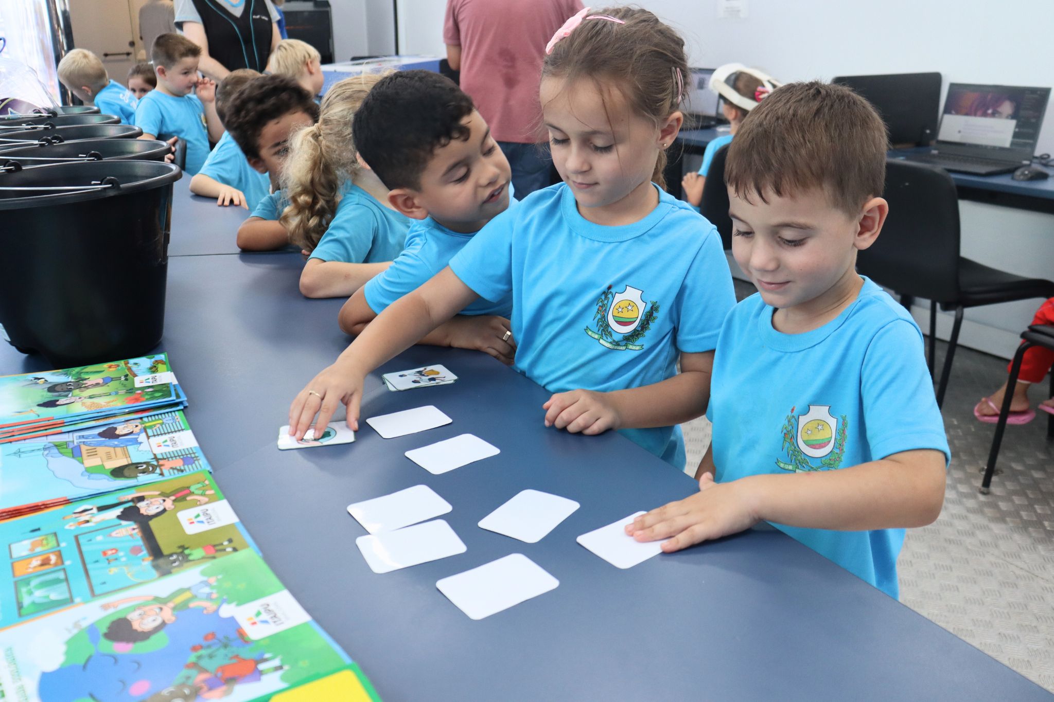 Além das atividades voltadas à inovação, o Governo Municipal, por meio da Secretaria Municipal de Agricultura e Meio Ambiente, realizou a ação “Brincando de Reciclar”. A proposta envolveu as crianças em atividades lúdicas com foco na separação correta dos resíduos, incentivando a consciência ambiental desde a infância.