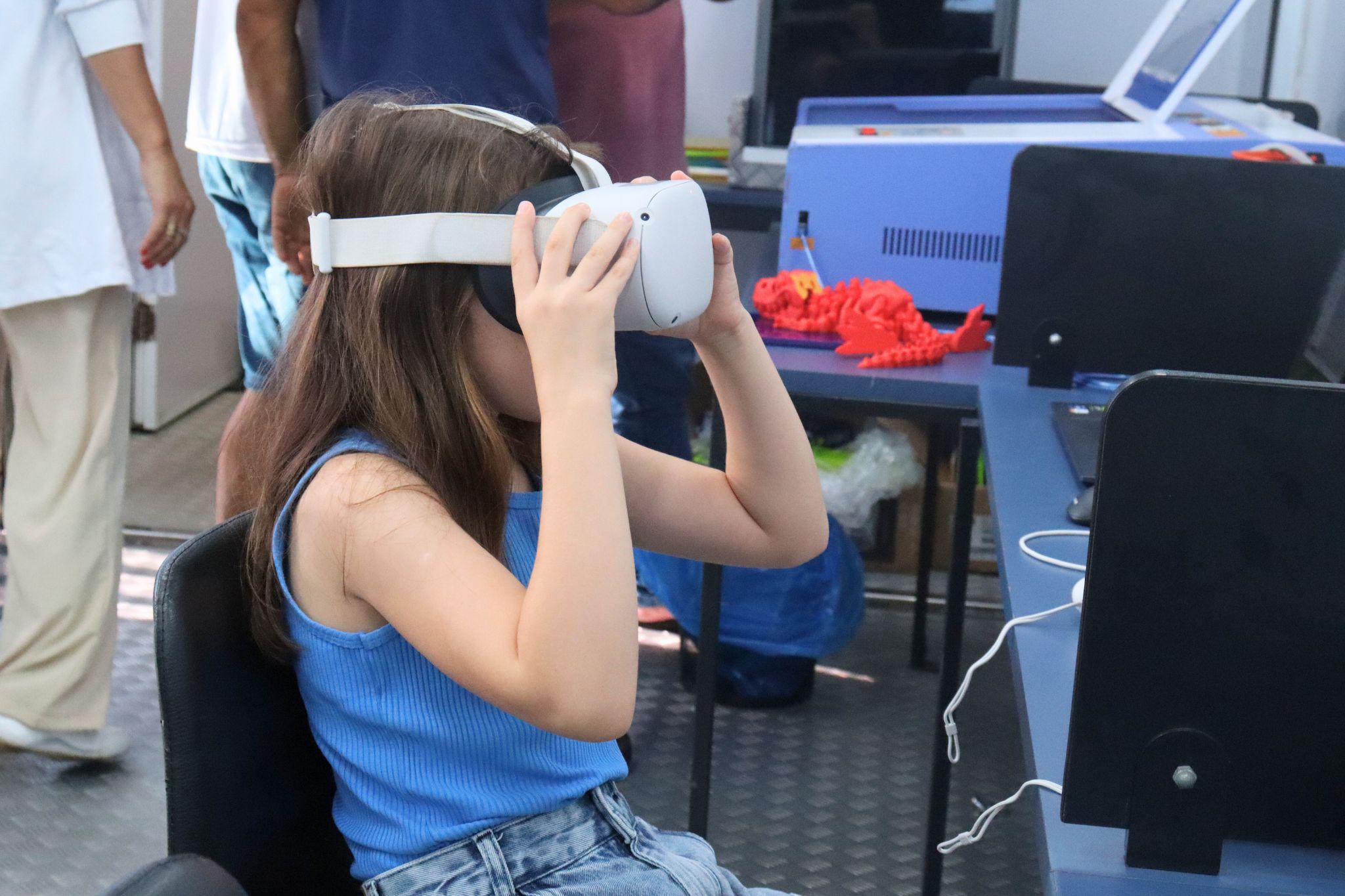 Durante os dias de programação, a estrutura disponibilizou telão com entretenimento, impressoras 3D, óculos de realidade virtual, recursos de Inteligência Artificial e videogame, permitindo que crianças, jovens e adultos tivessem contato direto com ferramentas tecnológicas presentes no cotidiano e no mercado de trabalho.